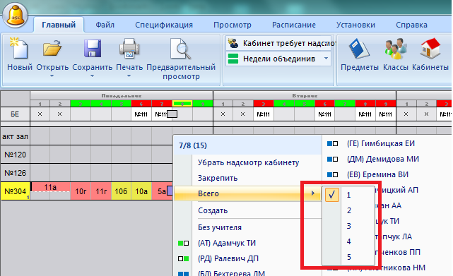 Примечание: Вы можете определить каждый надсмотр индивидуально, например, если надо, для утренних перерывов - два учителя, для послеобеденных - только один.