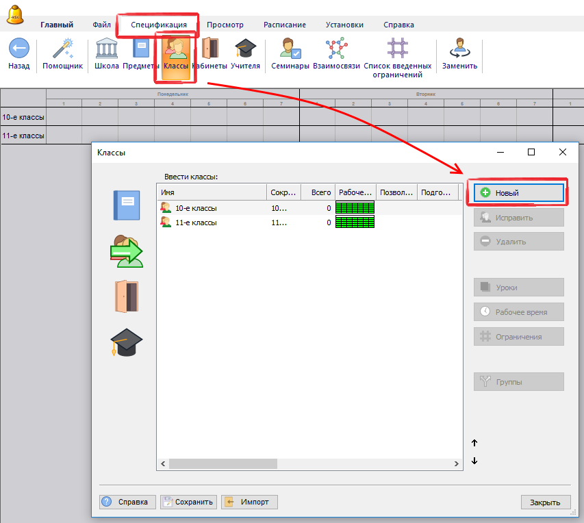 Перед вводом учеников надо ввести классы: