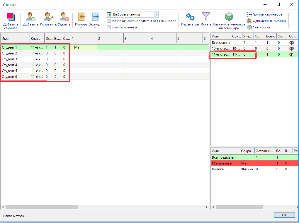 Потом выбрать "Семинары" и "Добавить учеников":
