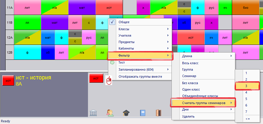 Как фильтрировать карточки уроков в зоне неразмещенных уроков