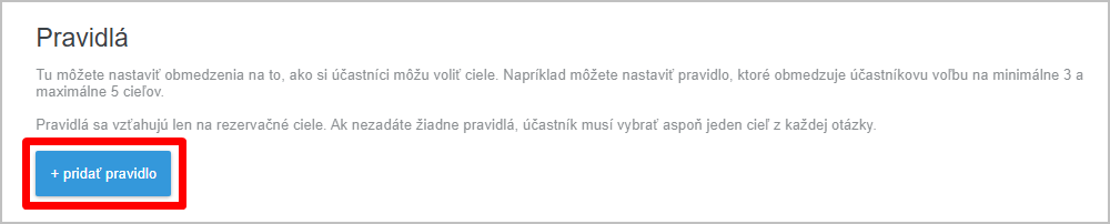 Zadajte prvé pravidlo a zvoľte, že platí iba pre ciele v 1. rezervácii: