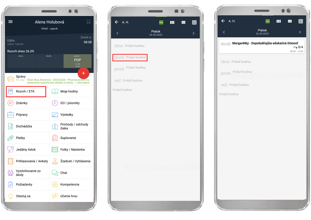 Hodinu nemusí pridávať do ETK iba administrátor, môže si ju pridať aj pani učiteľka, napr. aj cez mobilnú aplikáciu. K tomu však potrebuje pripojenie na internet.