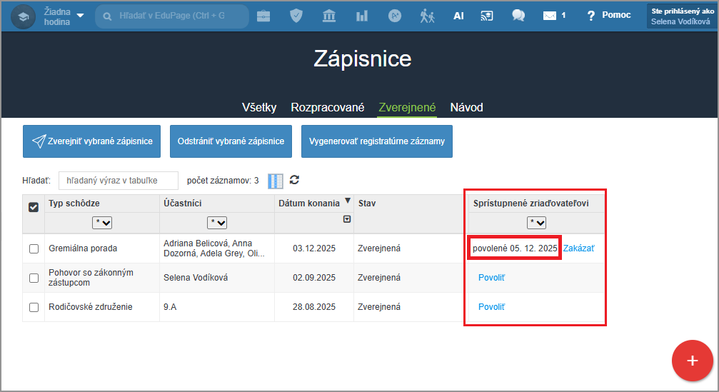 Ako môžem sprístupniť zápisnicu zriaďovateľovi?