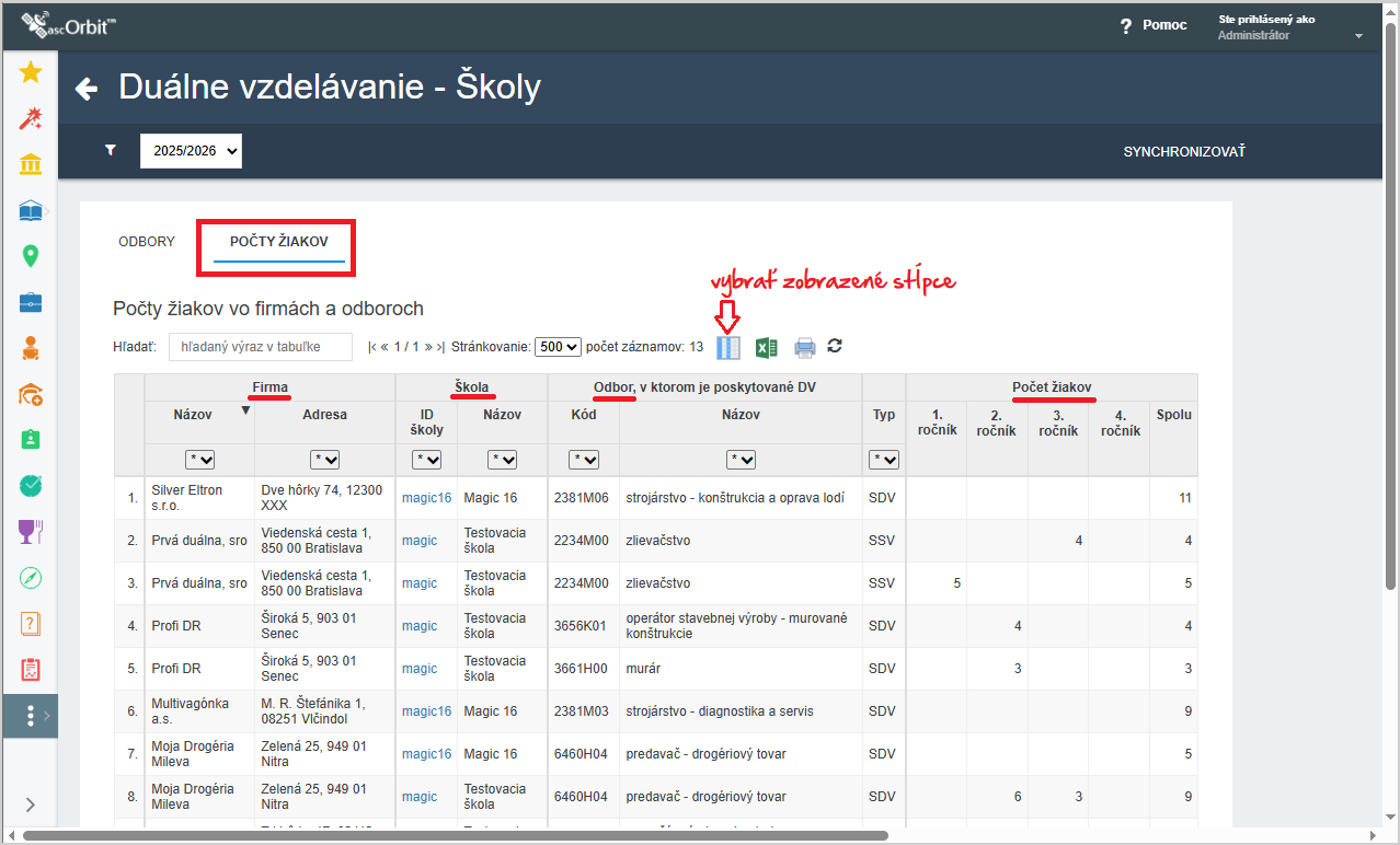 Prehľad duálneho vzdelávania v školskom roku pre vaše školy nájdete vo vašom aScOrbite.