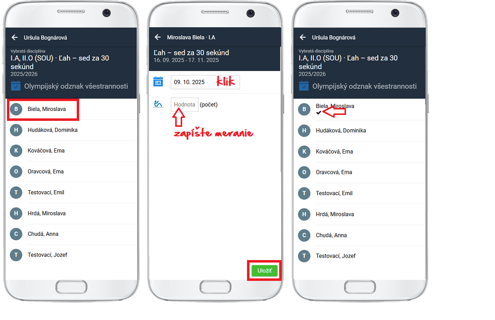 Zapíšte hodnotu a meranie pre žiaka uložte.