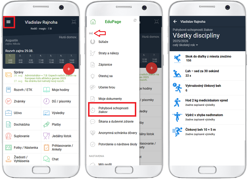 V hlavnom menu vyhľadajte ponuku Iné - Pohybové schopnosti žiakov: