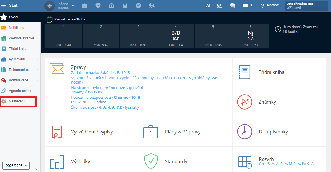 V levém menu vyberte možnost „Nastavení“.