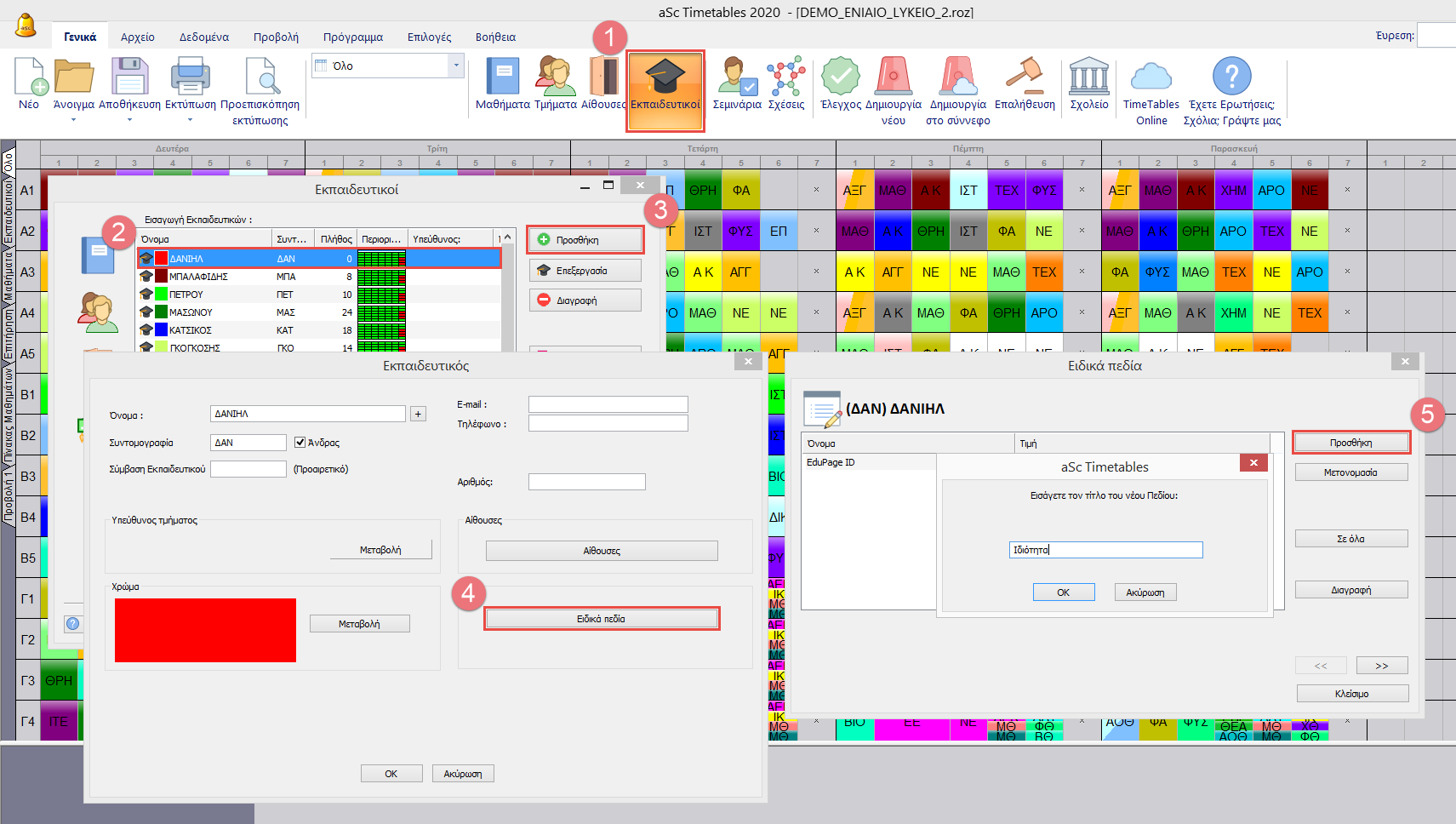 Μόλις δημιουργήσετε το πεδίο μπορείτε να εισάγετε τιμή για κάθε εκπαιδευτικό.