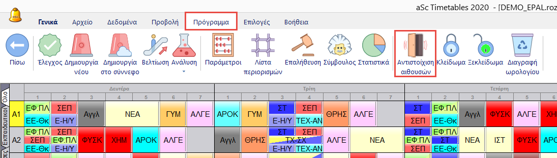 - Εάν έχετε αλλάξει τις διαθέσιμες αίθουσες για κάποιες διδασκαλίες που ήταν ήδη τοποθετημένες στο ωρολόγιο πρόγραμμα ή εάν έχετε διαγράψει τις αίθουσες.