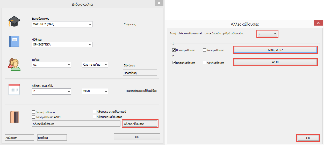 Ορισμός αιθουσών στις διδασκαλίες