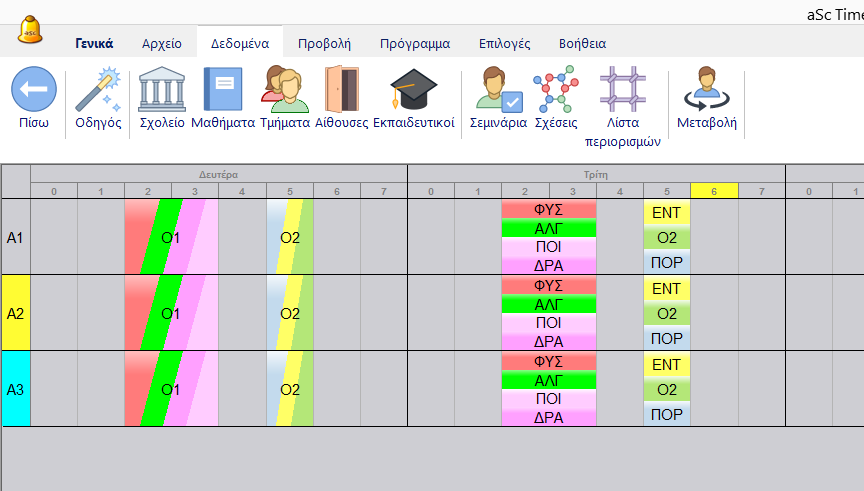 Για παράδειγμα οι μαθητές από τα τμήματα Α1, Α2, Α3 πρέπει να επιλέξουν: