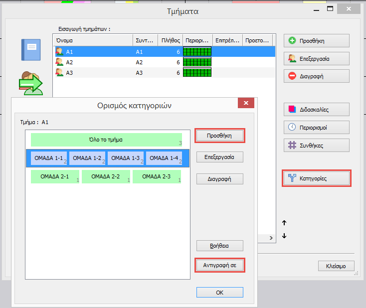 Κάντε κλικ στην λειτουργία Αντιγραφή σε για να αντιγράψετε όλη την κατηγορία στα άλλα τμήματα.