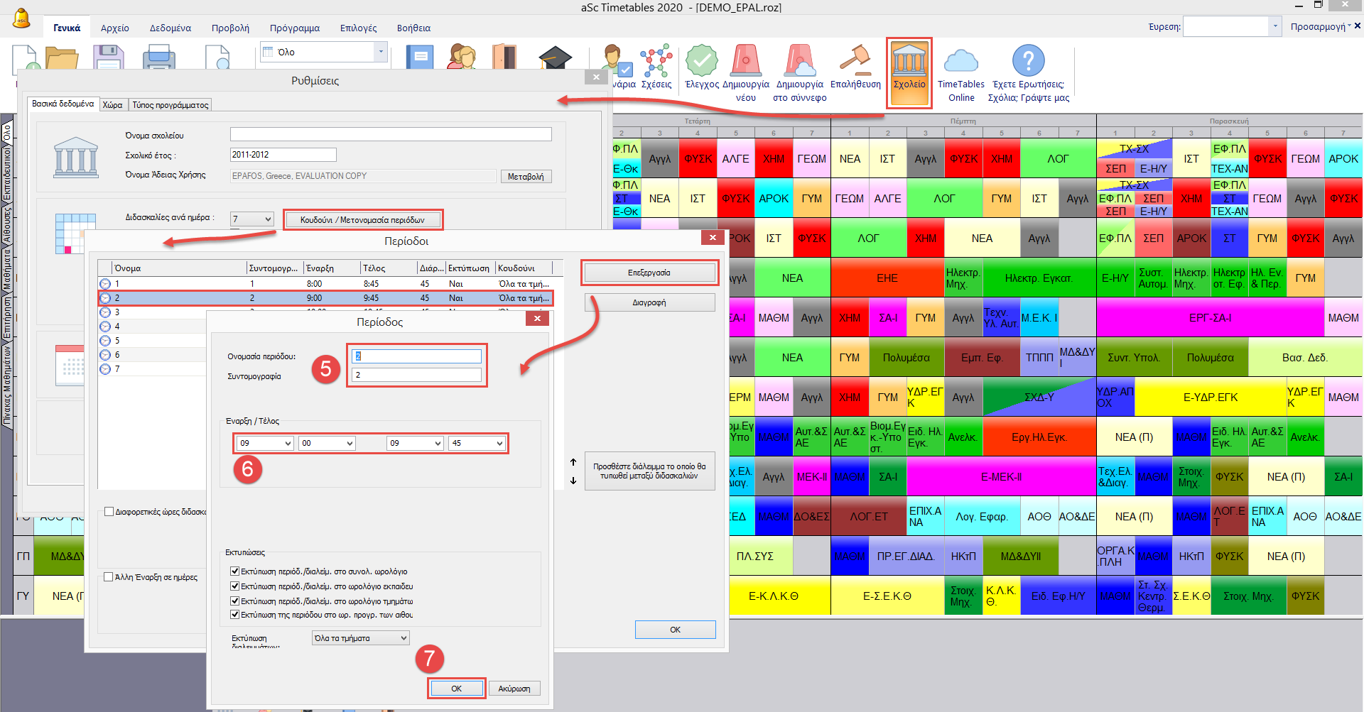 Σημείωση: Δεν μπορείτε να διαγράψετε περιόδους, μόνο διαλείμματα. Εάν θέλετε να αλλάξετε τον αριθμό των περιόδων, χρησιμοποιήστε την επιλογή στο αρχικό παράθυρο.