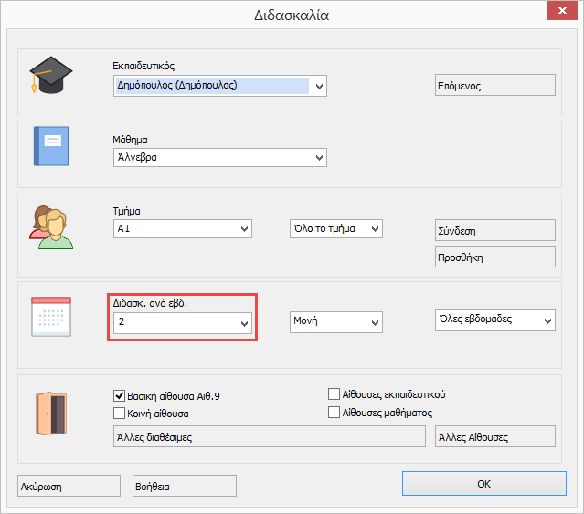 - Μπορείτε επίσης να ορίσετε η διδασκαλία να μην είναι μονή αλλά π.χ. διπλή.