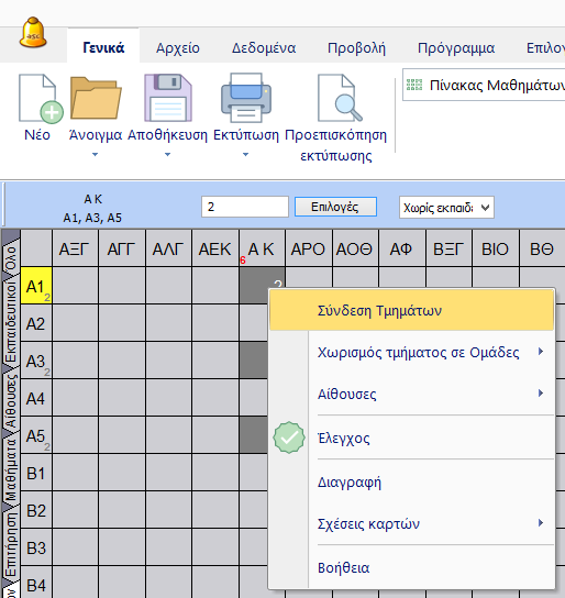 Μπορείτε γρήγορα να δημιουργήσετε συνδιδασκαλία τμημάτων στον Πίνακα Μαθημάτων.