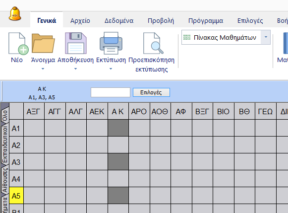 Ο Πίνακας Μαθημάτων σας επιτρέπει να επιλέξετε πολλαπλές διδασκαλίες από την ίδια στήλη.