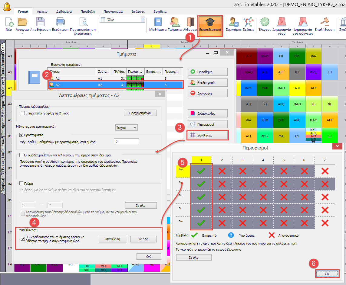 Όμως εάν ο εκπαιδευτικός διδάσκει παραπάνω μαθήματα ή διδάσκει διπλές και μονές περιόδους, τότε είναι καλύτερο να μην κλειδώσετε τις κάρτες, αλλά να το ορίσετε όπως φαίνεται παρακάτω.