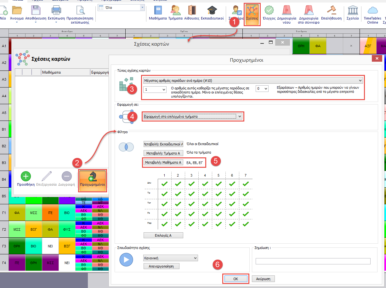 Τα τμήματα δεν μπορούν να έχουν παραπάνω από μία διδασκαλία από το γκρουπ των μαθημάτων π.χ. Γυμναστική / Τέχνες / Δράμα.
