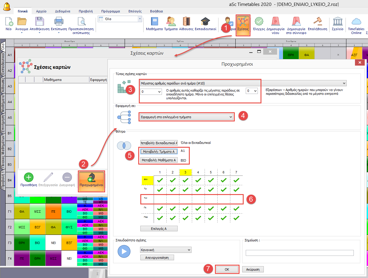 Εάν θέλετε κάποια διδασκαλία να μόνο μία συγκεκριμένη μέρα μπορείτε να ορίσετε την παρακάτω σχέση καρτών.
