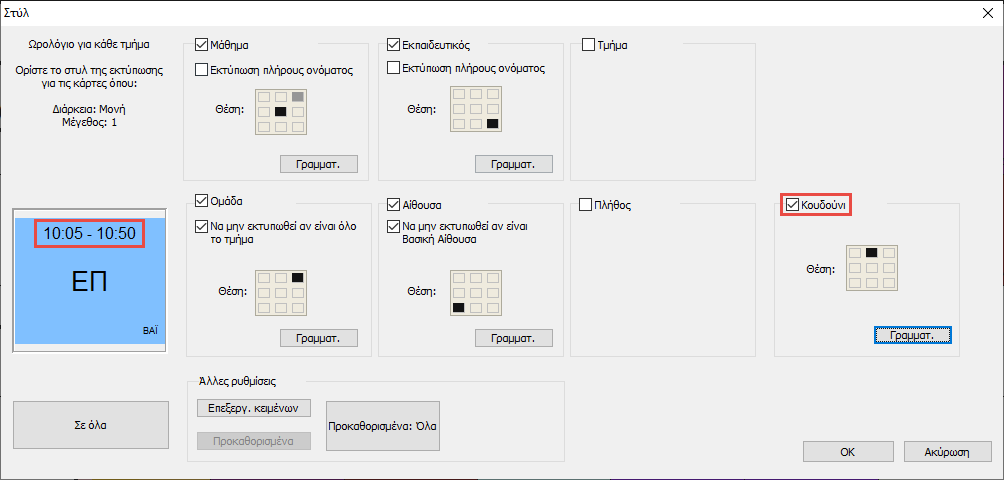 Εκτύπωση διαφορετικών κουδουνιών για ορισμένα κομμάτια του εκπαιδευτηρίου ή ορισμένες μέρες